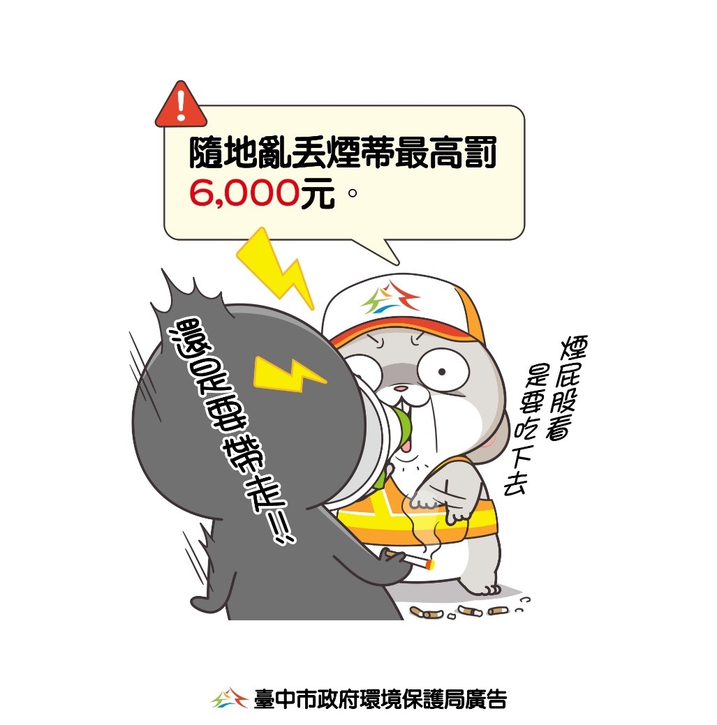 「不亂丟煙蒂,共創好環境,違者最高可處新臺幣