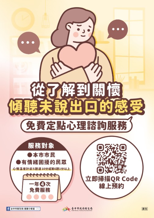 請親至本市各區衛生所或至本市『心理服務預約系統』線上預約。(網址:https://mental.health.taichung.gov.tw/)